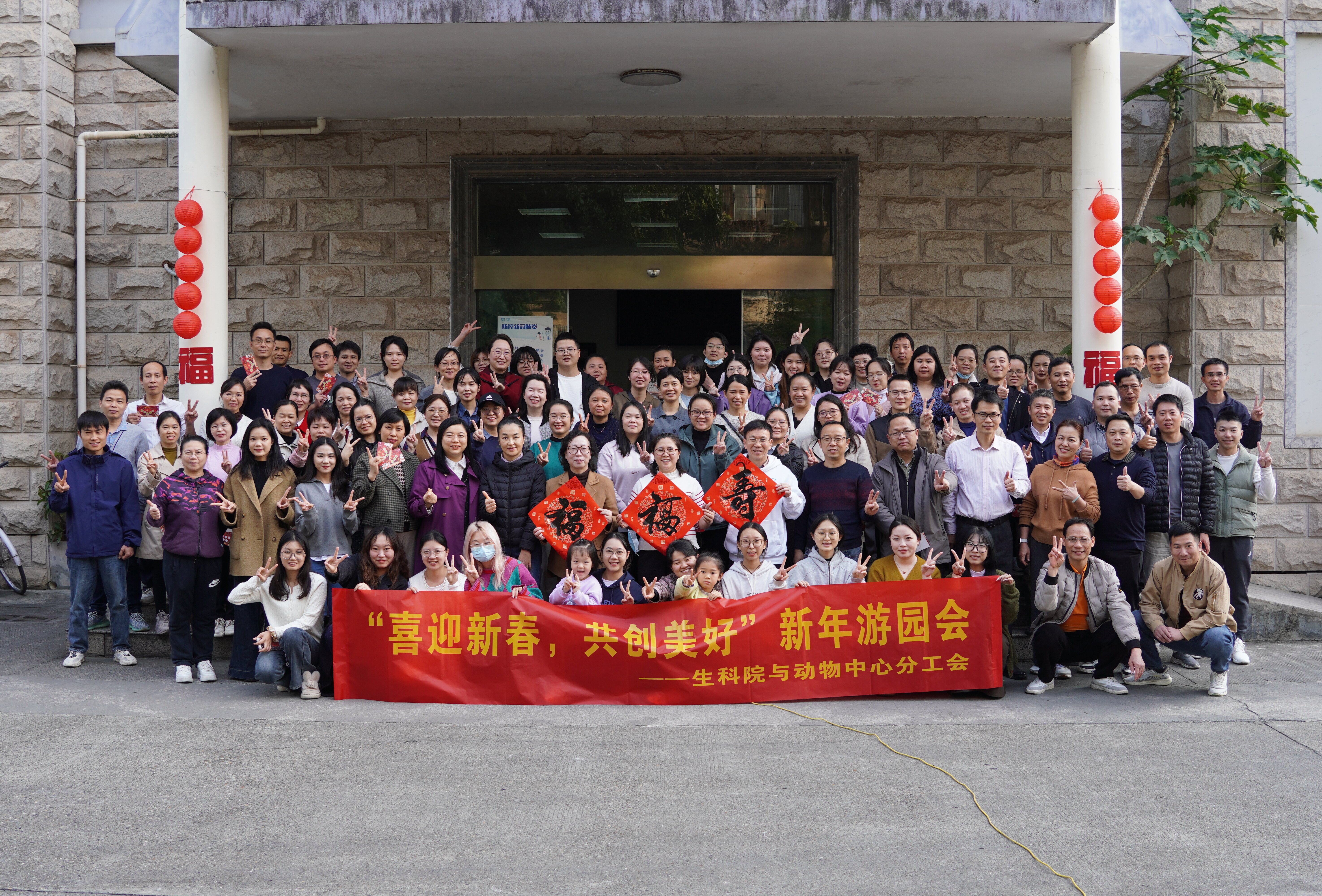 1月3日,生科院与动物中心分工会在学校实验动物中心大楼前举办“喜迎新春·共创美好”新年游园会。本次活动,旨在庆祝新年到来,通过营造喜庆祥和的氛围,激励教职工热爱教育事业,大力弘扬教育家精神和科学家精神,开拓进取,建功新时代。生科院党委书记陈国湘、院长梁浩、实验动物中心主任何敏、副主任欧阳轶强以及分工会职工及家属参加了活动。活动由分工会主席满健平主持。