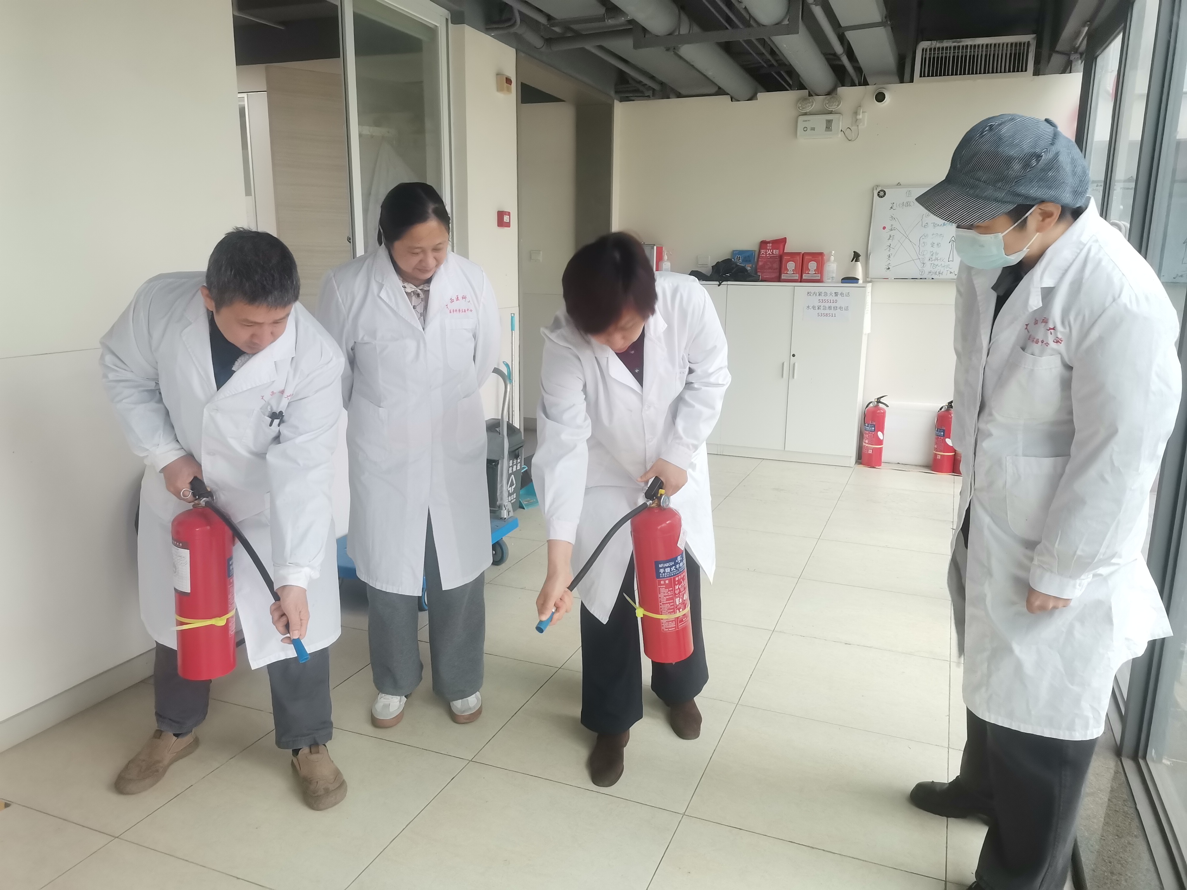 集中培训后,各实验室主任及安全员组织开展了火警报警、消防器材使用、疏散逃生及急救技能等实操演练与考核。通过“学练结合”模式,有效提升师生突发事件应急处置能力。